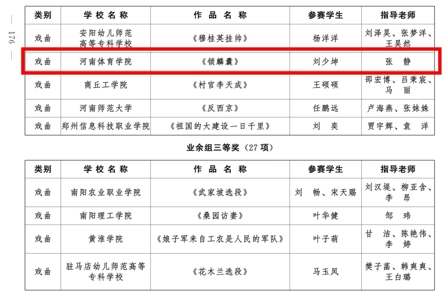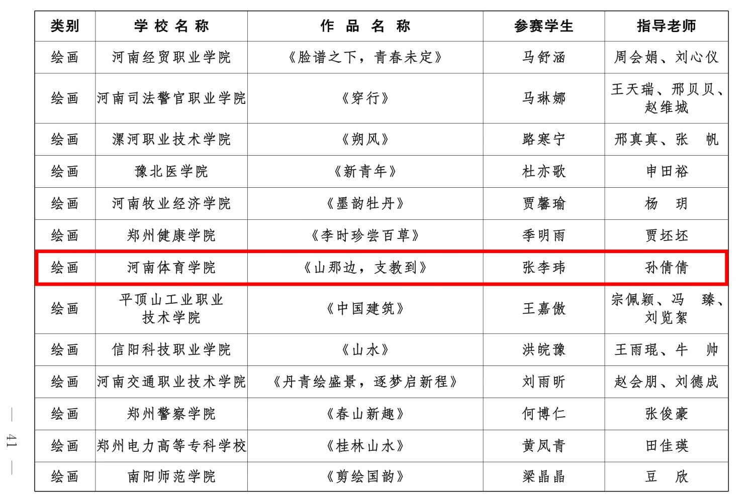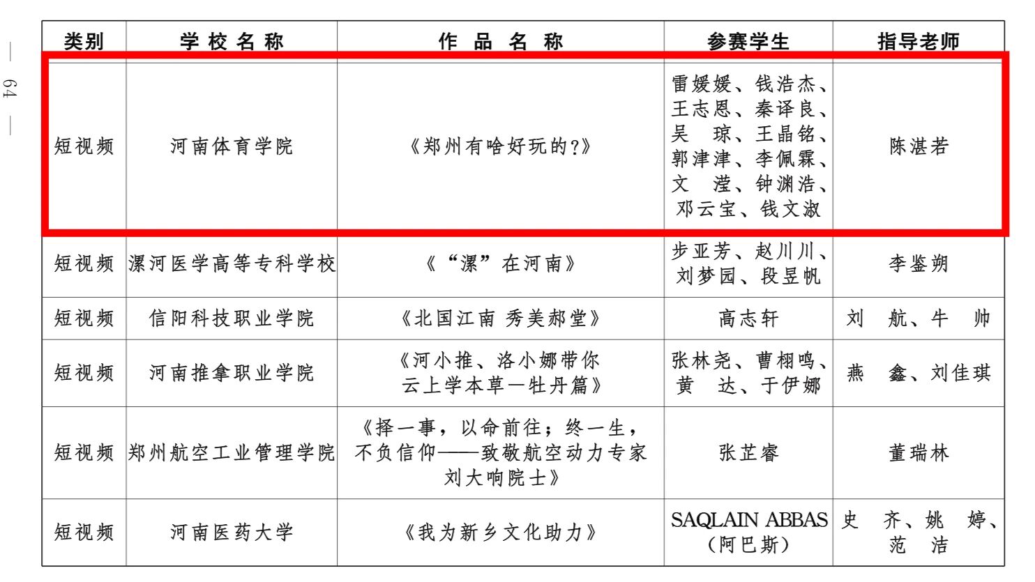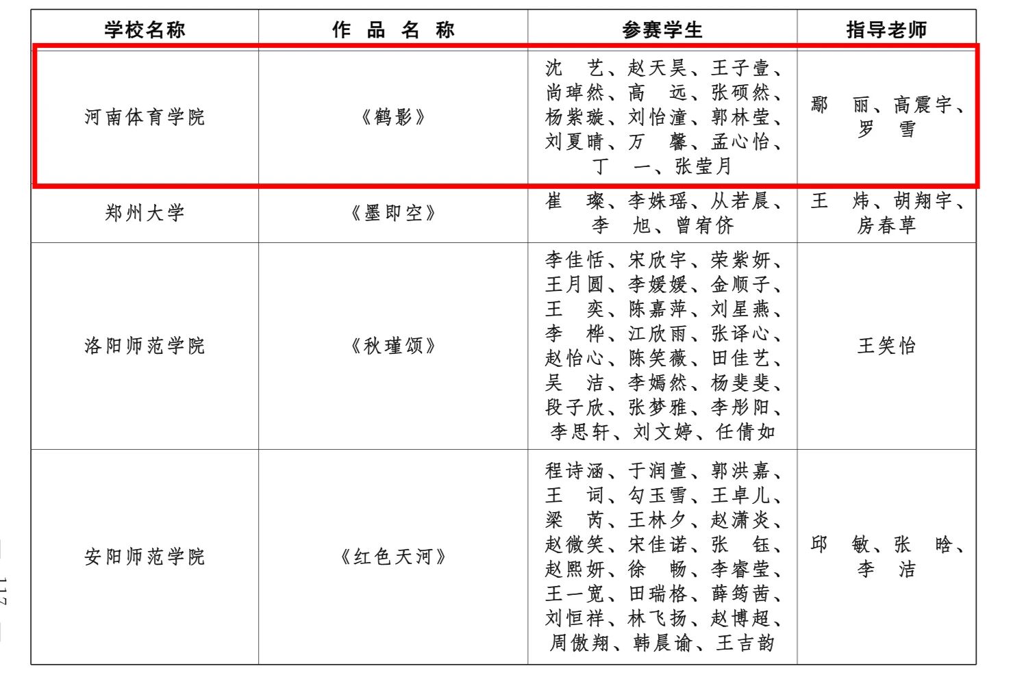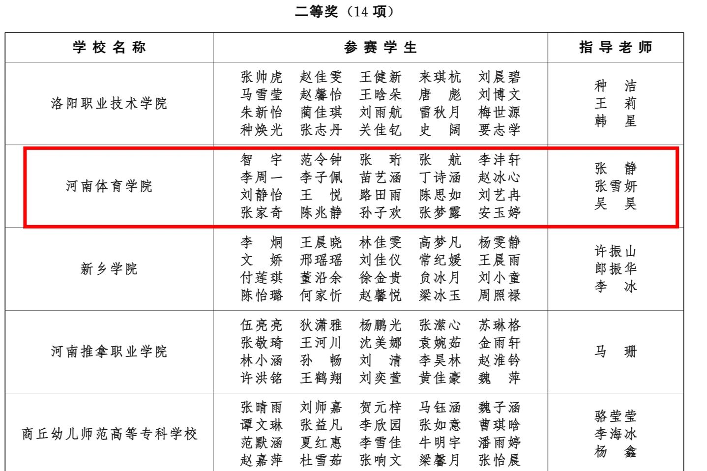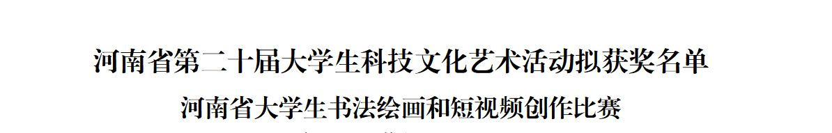 10月17日,中共河南省委宣传部、共青团河南省委、河南省教育厅、河南省文化和旅游厅、河南省科学技术厅、河南省体育局、河南省学生联合会联合印发《关于公布河南省第二十届大学生科技文化艺术活动结果的通知》,我校荣获一等奖1项,二等奖3项,三等奖2项。