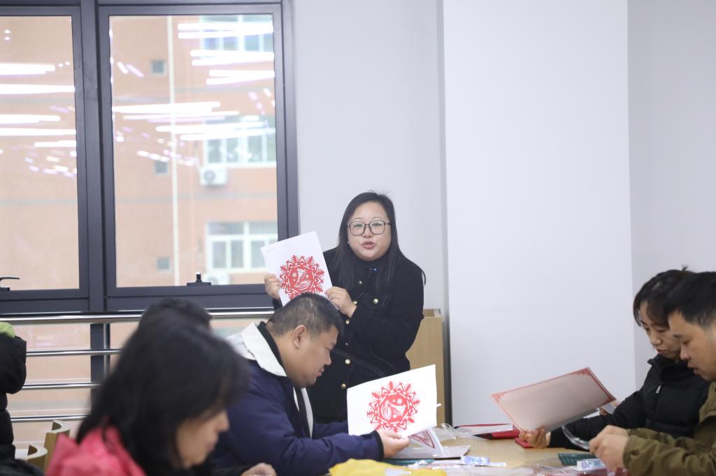 实践体验环节将活动推向高潮。在图书馆二楼举办的“匠心传非遗 冰雪绽风华”冰雪主题剪纸活动中,代表们在非遗技艺老师的指导下,亲手执剪,以纸为媒,巧妙融合冰雪运动特有的速度、力量与优美姿态于传统剪纸艺术之中。一幅幅生动活泼的滑雪、滑冰等主题剪纸作品逐渐成型,实现了非遗手工技艺与当代冰雪运动文化的创造性结合,也让参与者在亲手制作中体会到非遗传承的乐趣与匠心精神。