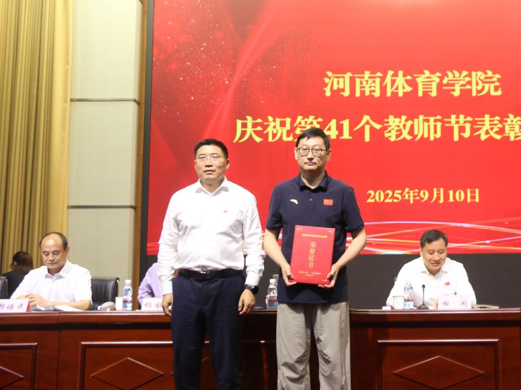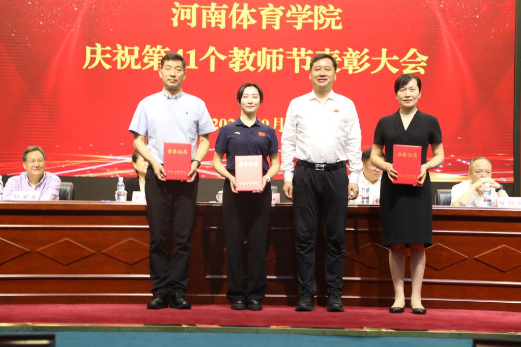 在全场热烈的掌声中学生代表向退休校领导、退休教师代表及工作满30年教职献上花,感谢他们辛苦耕耘、默默付出、为学校事业发展作出的积极贡献大会隆重表彰了我校“河南省教育系统先进个人”获得者、2024年度省教育系统教学技能竞赛获奖者、省本科高校教师课堂教学创新大赛获奖者、2024年度省高等教育教学成果奖获奖者、省教育科学研究成果奖获奖者、2024年度省体育局系统优秀共产党员优秀党务工作者2024年度省教育系统文明教师获得者、2024年度校“师德师风标兵获得者、2024年课堂教学创新大赛获奖人员与会领导分别为他们颁奖并合影留念。