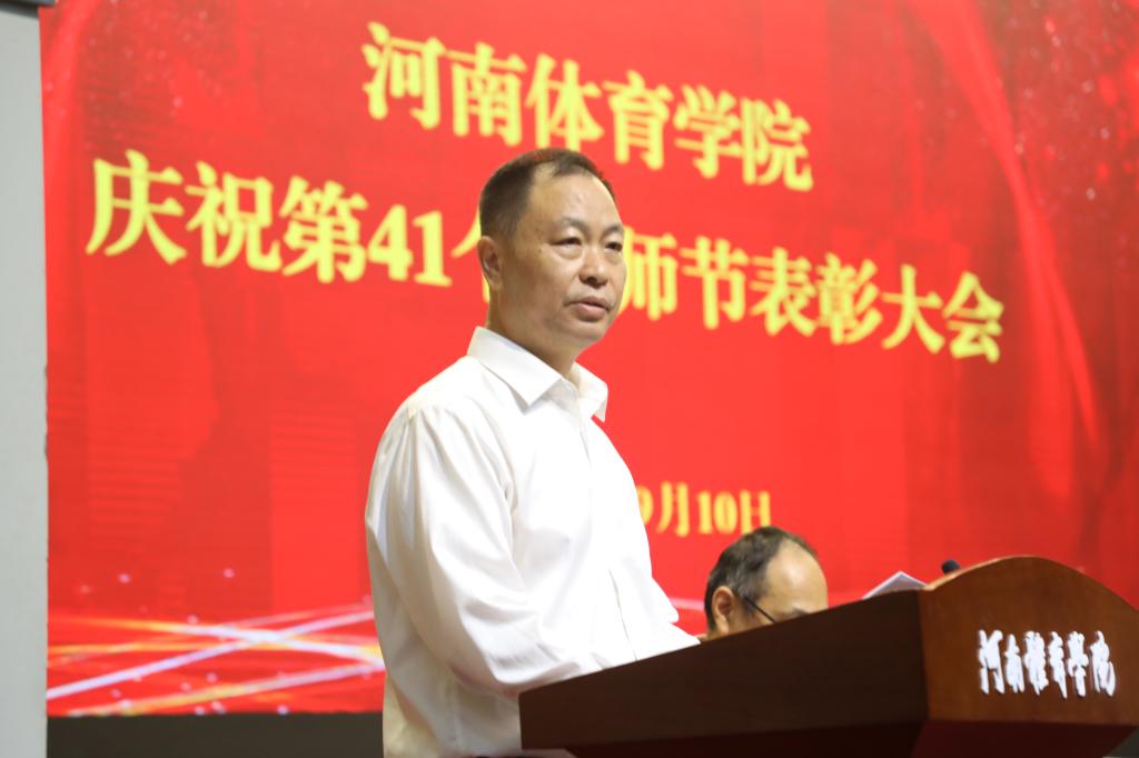 金秋九月,杏坛飘香。9月10日,河南体育学院庆祝第41个教师节表彰大会在学术报告厅举行河南省体育局党组成员、副局长田间出席会议,校领导张大超及班子成员退休校领导及退休教师代表、师生代表400余人参加大会。大会由校领导刘丹宁主持。