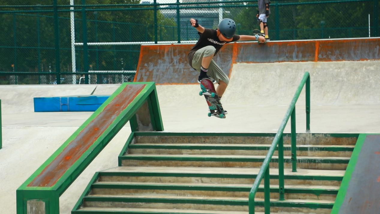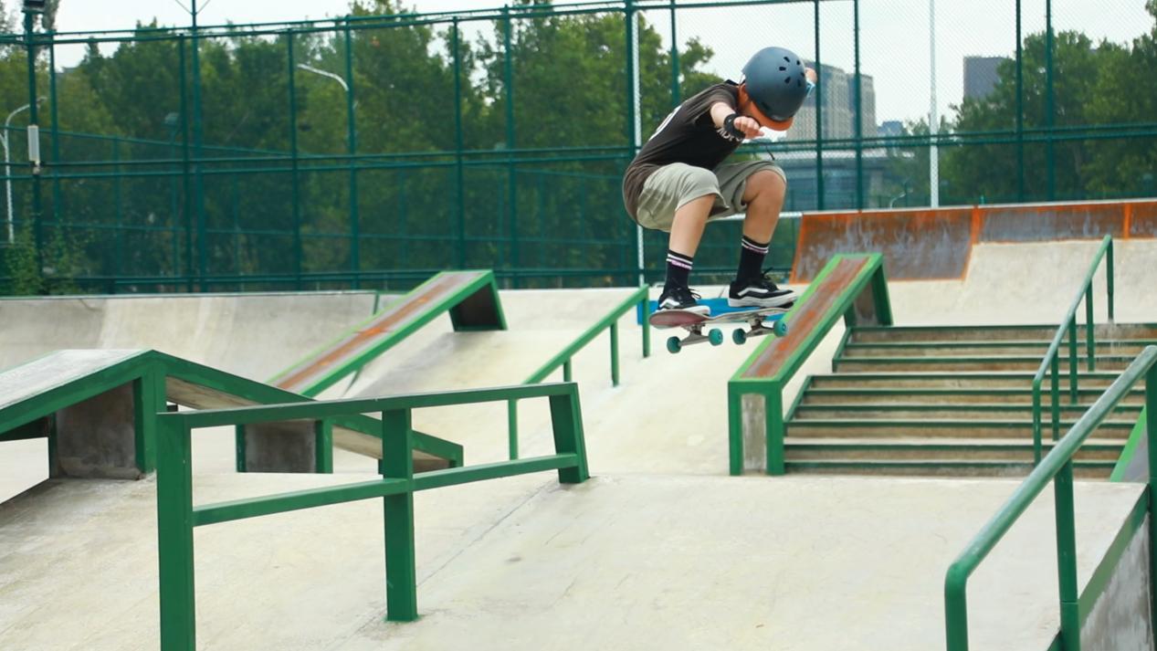 在街式滑板专项训练中,闫夏展现出了超乎年龄的专注力与果断坚韧的执行力。他每天练习时长超过6小时,膝盖、手掌多处擦伤仍拒绝下场休息。