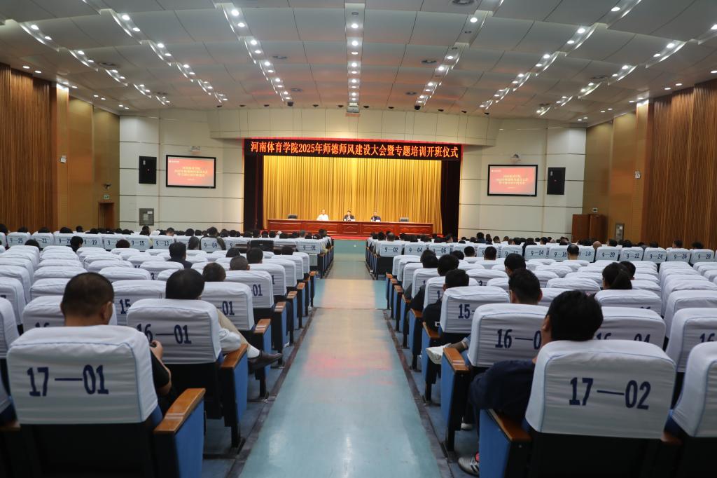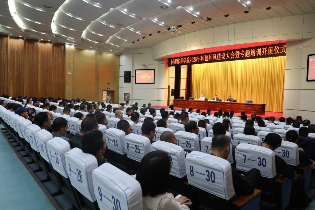 9月28日下午,河南体育学院2025年师德师风建设大会暨专题培训开班仪式在学术报告厅举行,校领导张大超、刘丹宁、郑焕民出席会议,全体教职工参加会议。