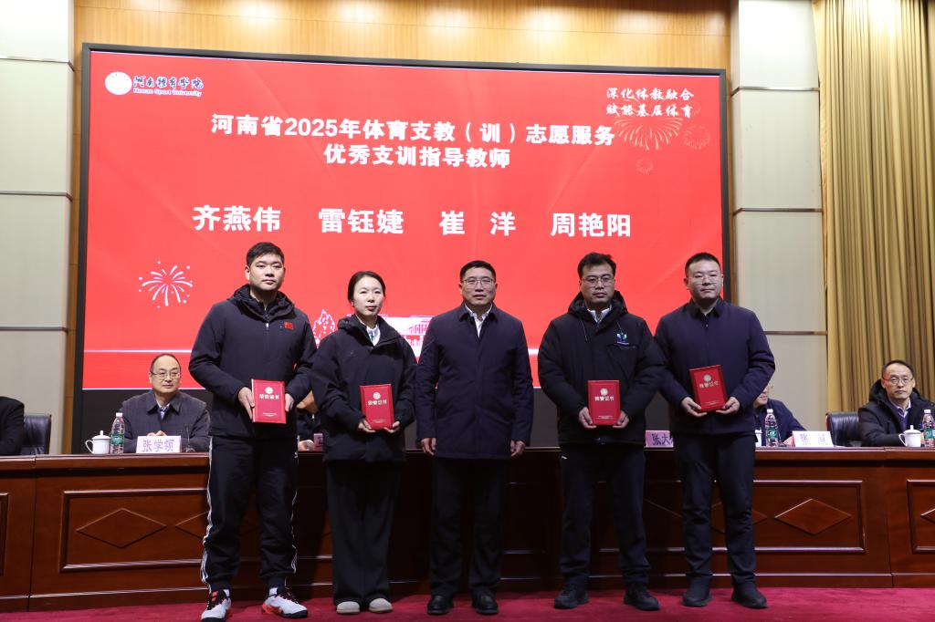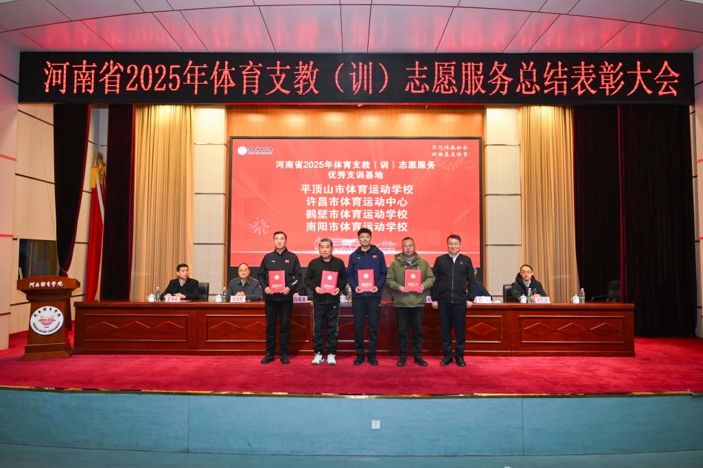 为全面总结2025年度体育支教(训)工作成效,表彰先进、凝聚共识共谋发展,进一步推动体教融合走深走实,1月5日,河南省2025年体育支教(训)总结表彰大会在河南体育学院召开。河南省体育局党组成员、副局长李激扬,省体育局青少处处长马延春,河南体育学院校领导张大超、张原、张学领等出席大会。省体育局相关处室人员、各地市体校负责人、支教团队师生代表等共同参会。